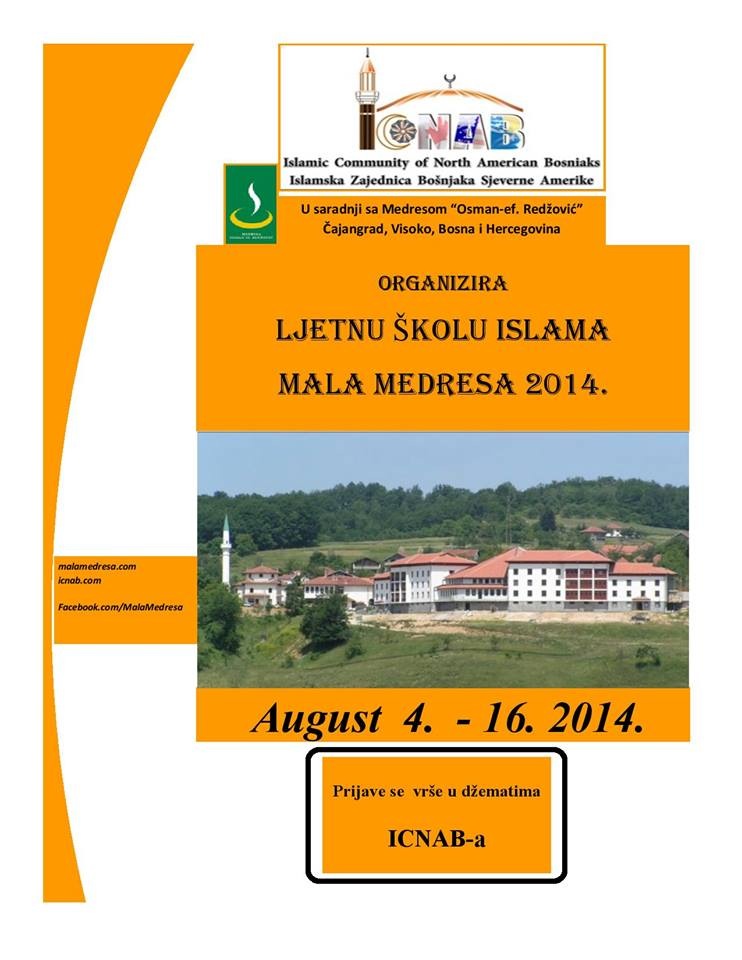 Islamska Zajednica Bošnjaka Sjeverne Amerike u saradnji sa medresom “Osman ef. Redžović“ u Velikom Čajnom kod Visokog, i ove godine organizuje ljetnu školu islama pod nazivom “Mala Medresa 2014”. Cilj Ljetne škole Islama je međusobno povezivanje naše djece, kao i povezivanje naše djece sa domovinom Bosnom i Hercegovinom, kao i da na organiziran način omogući […]